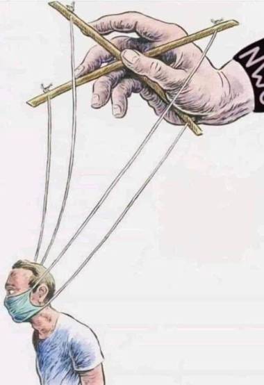 Para além do impacto psicológico, também há o impacto político. O uso de máscaras passou a ser um símbolo do controle estatal sobre a vida dos cidadãos. A obrigatoriedade de seguir normas impostas por um poder público evidentemente despreparado e megalomaníaco é representada pela focinheira posta em seus cidadãos, que cobre suas bocas, impedindo-os de protestar.