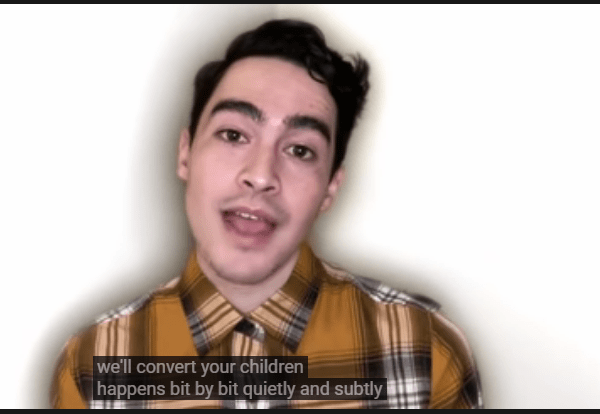 Vídeo de exemplo 3: neste segundo vídeo o Coral de Homens Homossexuais de São Francisco diz claramente na letra de sua música que querem corromper as crianças das famílias cristãs.