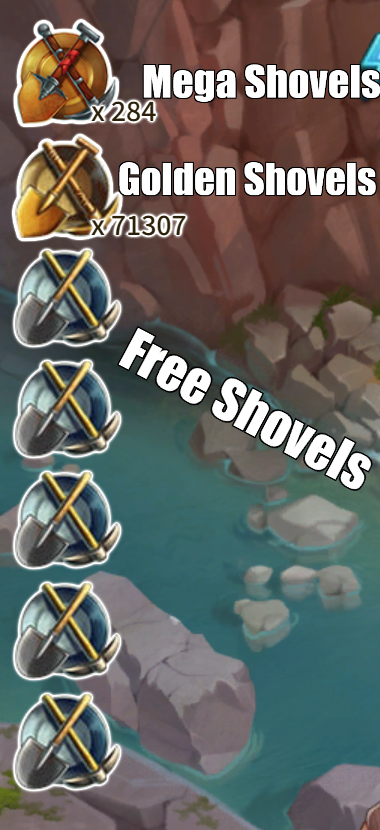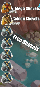 In order to dig, you need Shovels. There are 3 types of Shovels: Free Shovels, Golden Shovels and Mega-Shovels. They are held at your Storage but you don’t need to keep track of them. Whenever you enter a Neighbour’s Station, it will show the amount of each type of Shovels you have.