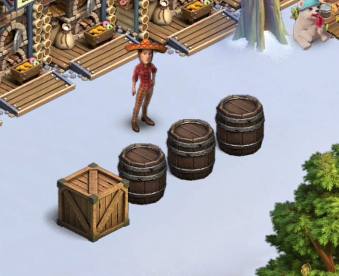 These Boxes and Barrels can be put into your sled and brought to other lands, and even be placed there. But once placed, they cannot be stored again. They will occupy precious land space until opened. You can place them all at once, or place and open one by one.