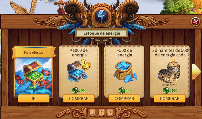 The last form or purchase that I remember is the direct purchase. You click your Energy Meter and buy more energy with Emeralds. The more the amount, the larger the discount.