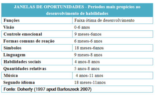 4) Em nenhum momento se mencionam as ”janelas de aprendizagem” (”windows of opportunities”), períodos de tempo específicos na vida da criança (já bem conhecidos e determinados) onde o cérebro está em condições ótimas de aprender/apreender certas coisas. Pelo contrário, a BNCC explicita claramente não haver ordem hierárquica ou temporal para a implementação das aprendizagens essenciais. Perde-se a oportunidade de institucionalizar melhores práticas pedagógicas como o padrão esperado a ser implementado na primeira infância, e em lugar disso, mantém-se a discricionariedade possivelmente sub-ótima dos entes educacionais no planejamento pedagógico dessa fase.