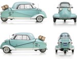 Para mim, dentre os modelos que conheço, o mais carismático é o Messerschmitt. A Messerschmitt foi uma fabricante de aviões militares alemã, produzindo centenas de unidades para a Luftwaffe. Com o fim da guerra e a proibição de fabricação de aviões militares, ela se reinventou como produtora de minicarros. Sua resposta foi a de aproveitar a construção de um avião, tirar as asas e pô-lo na estrada! O resultado é um cativante triciclo com motor de duas válvulas, no formato de um aviãozinho, para deslizar pela estrada.